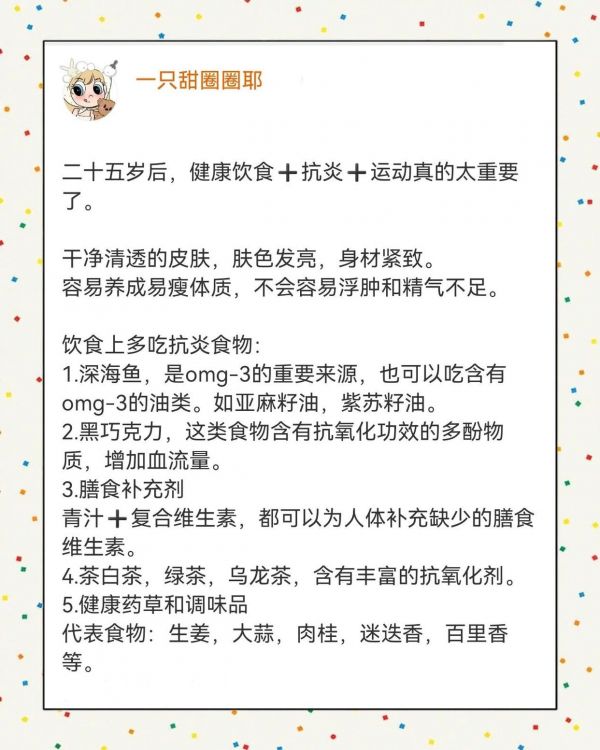 25岁,一个新的人生阶段,我开始意识到健康饮食、运动和K炎的重要性。 拥有健康的饮食,皮肤会变得干净清透,肤色发亮,身材也会变得更加紧致。️♀️ 以下是我在这个阶段总结的一些关键点: