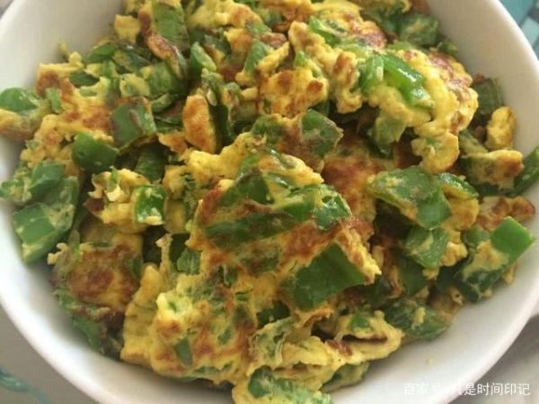 开锅,放少许油,加热至八成热,将青椒蛋液放入炒熟,出锅;时间: