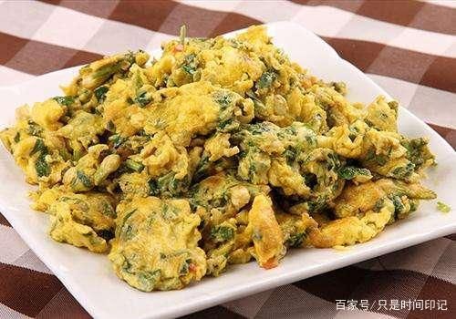 开锅,放少许油,加热至八成热,将香椿蛋液放入炒熟,出锅;时间: