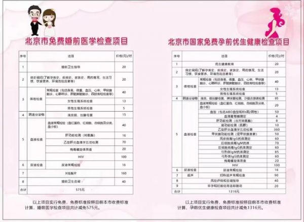 相关内容:优生五项、肝肾功、甲功、血糖、乙肝五项、血型、血尿常规、妇科超声等。