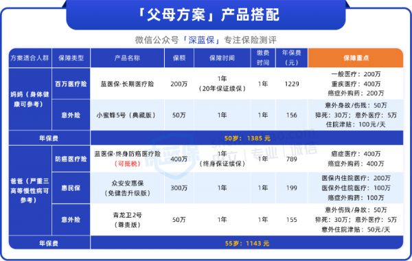 这套方案适合身体健康的爸妈参考,能提供全面的保障: