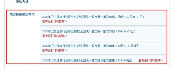 第二步:进入后找到“职业技能鉴定考试”,选择考试批次和考试时间,点击“准考证打印/查询”