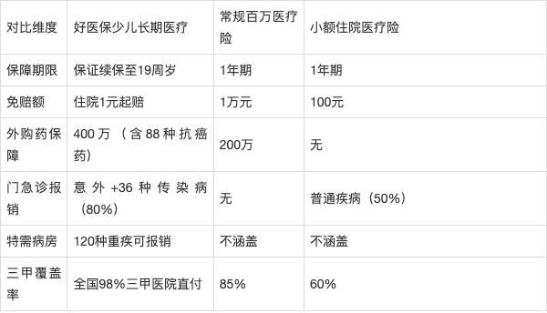 重点推荐好医保少儿长期医疗与其他产品的核心参数对比: