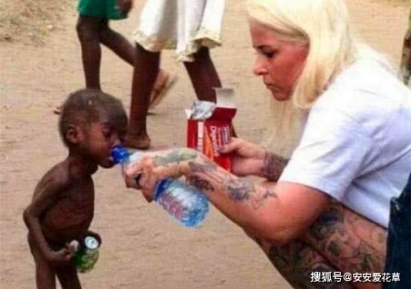 还记得几年前火遍全网的“非洲喝水男孩”吗?没错,就是下面图片里的那个非洲男孩,当时这张图片与其报道火遍全网,进而有很多人开始关注非洲难民,也关注这个男孩。当时这个男孩骨瘦如柴,过往的游客恰巧拍下一位女游客给他喂水的图片。