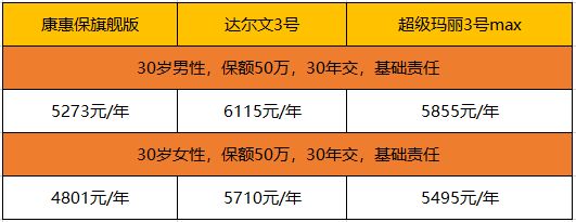 与市面热销产品超级玛丽3号、达尔文3号对比,康惠保旗舰版重疾险保费便宜不少,而保费差距主要体现在赔付比例上。