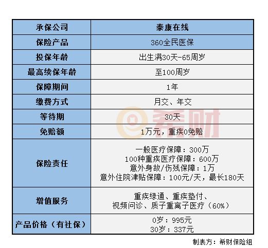 360全名医保是360保险一款百万医疗险产品,由泰康在线承保。投保首月保费只需1元,今天希财君就带大家一起来了解一下,看看360全民医保怎么样?感兴趣的话不妨一起接着往下看吧。