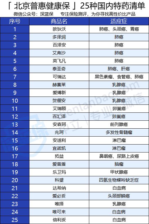很多惠民保只保障国内的特药,而北京普惠健康保可以保障25种国内特药,75种国外特药,一共可以保障100种特药。