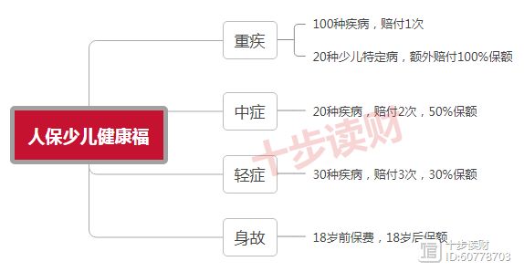 少儿健康福对20种疾病可以额外赔付100%保额,高发的儿童重疾覆盖率很高,像脑肿瘤、较小面积Ⅲ度烧伤都可以额外赔付100%保额,同类产品多是基础保额。