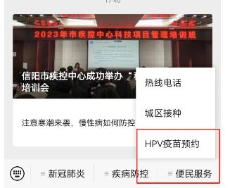 第二步:在下边栏里点击:“便民服务”后选择”HPV疫苗预约“