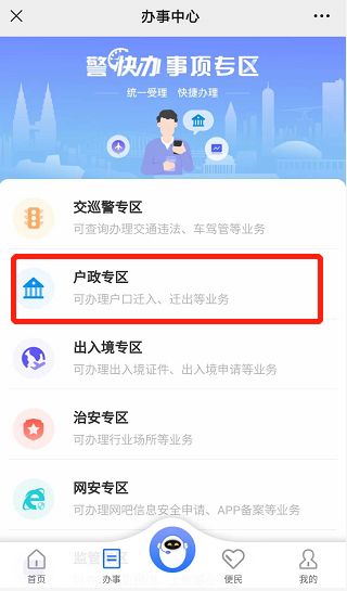 关注微信公众号“警快办”(或点此进入扫码关注),并实名注册认证。在“警快办”办事中心—户政专区—居民身份证(含临时身份证)业务内进行申请。