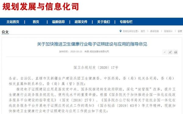 近期,国家卫生健康委办公厅、国家中医药局办公室联合发布了《关于加快推进卫生健康行业电子证照建设与应用的指导意见》。《意见》提出了3个工作目标、4个重点任务、4个行业应用、4个保障措施。