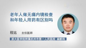 老年人做无痛内镜检查和年轻人用药有区别吗 2019-06-19阅读:3.62w 老年人做无痛内镜检查和年轻人用药的区别:老年人随着年龄增长,他的生理方面跟年轻人相比会发生一些变化,包括他的肝功能、肾功能或者一些血浆蛋白的浓度,就造成了老年人在用药的剂量方面与年轻人会有所不同。另外因为老年人心肺功能的代偿能力都会有所下降,所以尽量选择对于循环系统干扰比较小的药物,来进行无痛内镜检查的麻醉。 程远