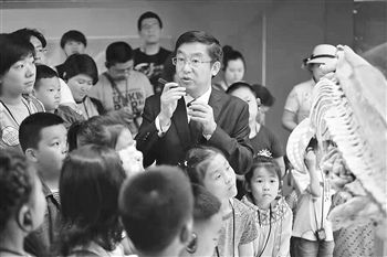 隋鸿锦向少年儿童讲述标本的故事。受访者供图