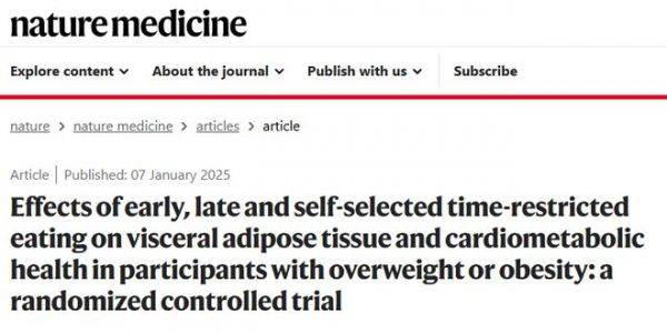 2025年1月7日,西班牙格拉纳达大学的研究人员在"Nature Medicine"期刊上发表了一篇题为" Effects of early, late and self-selected time-restricted eating on visceral adipose tissue and cardiometabolic health in participants with overweight or obesity:a randomized controlled trial "的研究论文。