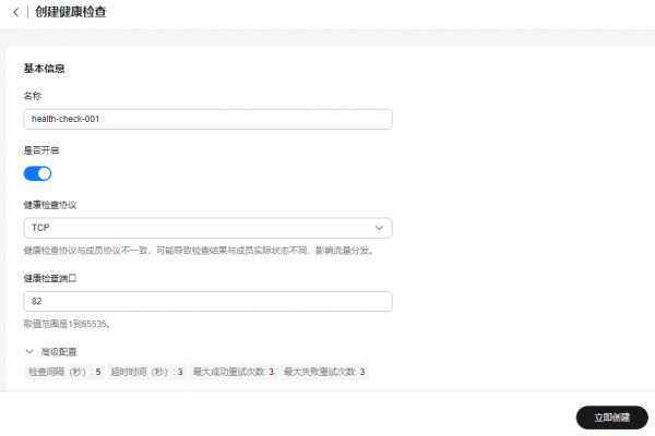 基本信息设置完成后,单击“立即创建”。返回健康检查列表,可以查看新创建的健康检查。