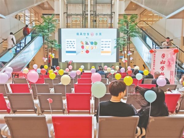 医院候诊大厅在播放健康饮食的科普知识。