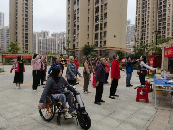 “双腿微屈站立,双手展开,微微用力将手臂前后摆动······”原来是活动现场,区疾控中心的工作人员在带领着居民一起做“甩手操”,号召居民一起运动起来,通过健康锻炼有效控制血压水平。