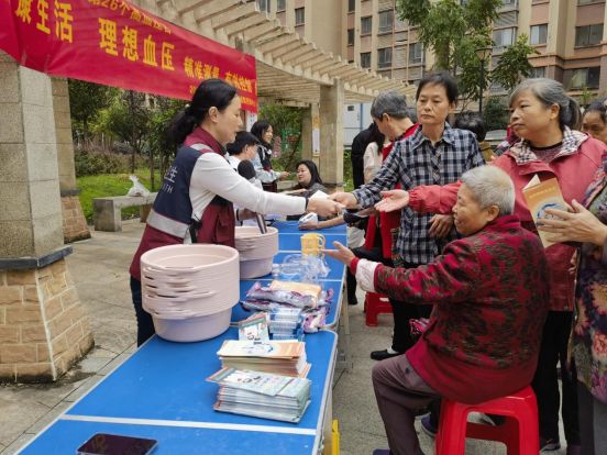 高血压是危害人类健康的慢性疾病,为深入推进健康蓉江建设,切实提高辖区居民对高血压防治的重视,潭东镇高校园区工作组联合区疾控中心、高校园区社区卫生服务中心在和谐家园小区开展“健康生活·理想血压”全国高血压日主题宣传活动。