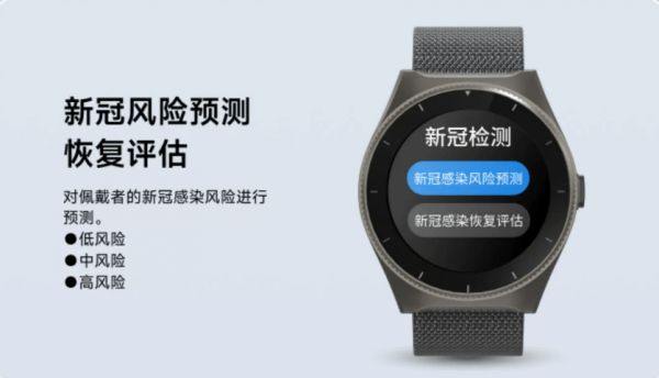 最后一个惊喜:橙子大健康Watch D还有一个新冠风险评估功能。该手表对新冠检测的几个重要指标:血氧、心率、体温等进行综合判断,对佩戴者的新冠感染风险进行预测。它将新冠感染风险分为低风险、中风险、高风险,通过将佩戴者的测量数据与每项指标的正常值及参考范围进行比对,判断佩戴者处于哪个风险区域。