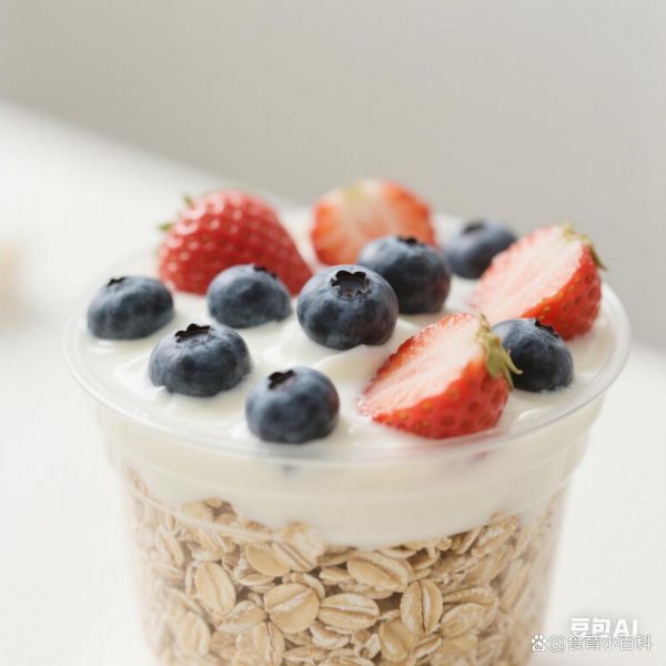 食材:即食燕麦片30克、无糖酸奶100克、蓝莓30克、草莓50克。