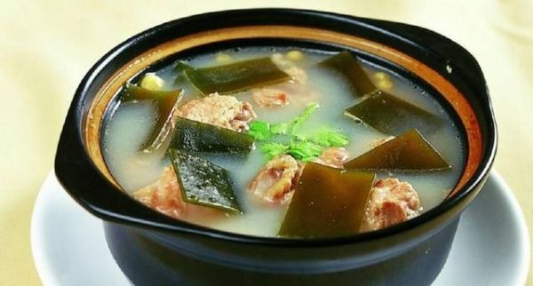 用料:排骨300克,海带结120克,鲜玉米粒20克,盐,味精