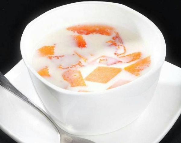 用料:木瓜半个,鲜牛奶一杯,鸡蛋一个,糖