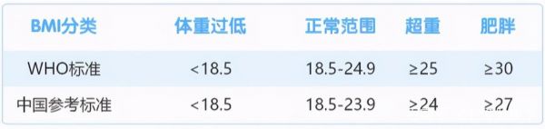经过世界卫生组织(WHO)的专家评估后认为,亚洲成人的超重指标低于世界平均水平。亚洲各国根据本国的实际情况,制定符合本国的超重和肥胖的分界值。建议超重的分界值在22到25间浮动,肥胖的分界值则在26到31间浮动。我国制定的BMI标准如下。