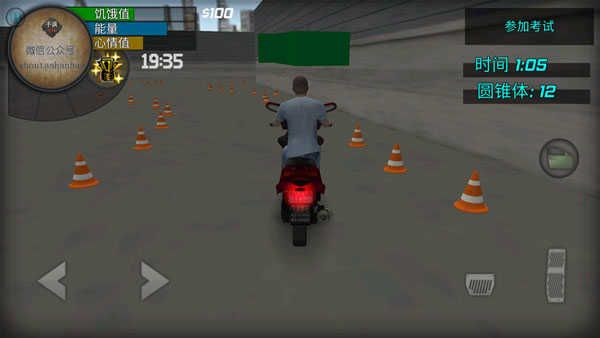 初次进入游戏,根据简单的提示,报名、到考场驾驶着提供小车,在有限的时间内,不要赚翻13个障碍的前提下,完成任务挑战,最终获得驾照。