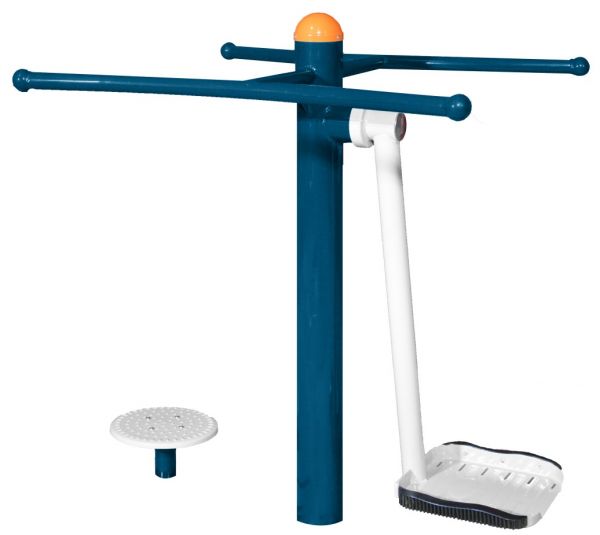 3.锻炼方法:双手握紧扶手,双脚在地面圆盘上站稳,均匀用力,缓慢向左右两边反复转动;双脚合并站在脚踏板上,双手握紧扶手,然后腿部用力做钟摆运动