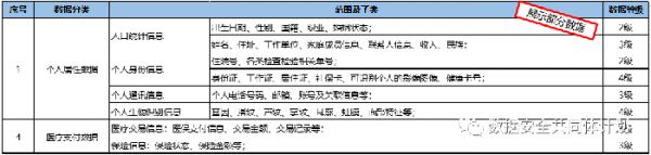 下表是结合某三甲医院实际情况和数据安全合规保护要求,制定的医院数据分类分级规范示例(部分)。