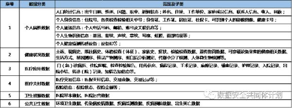 下表是依据《信息安全技术 健康医疗数据安全指南》的一个数据分类表。