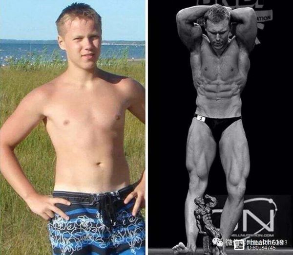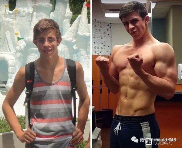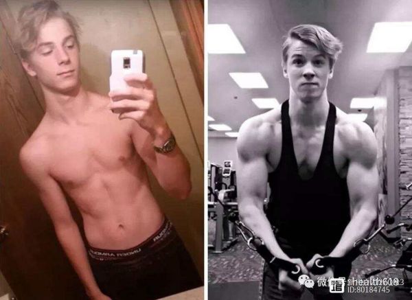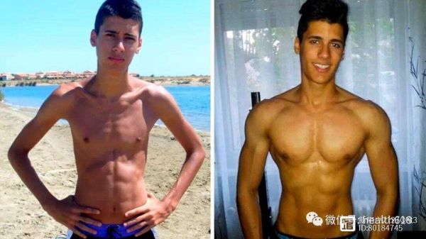 案例1(上图):这位小哥用了2年时间将自己打造成了肌肉男,从照片对比可以看出,他瘦弱之时显然既无美感,气色状态也不怎么样,而成为肌肉男后则显得健康自然。