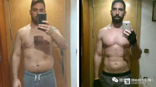 案例3(上图):这位大叔花了5个月的时间减肥和进行力量训练,尽管线条还不是很理想,但块状腹肌已经开始出现,腰腹的赘肉已经基本消除。注意他的脸型,也明显消瘦了。