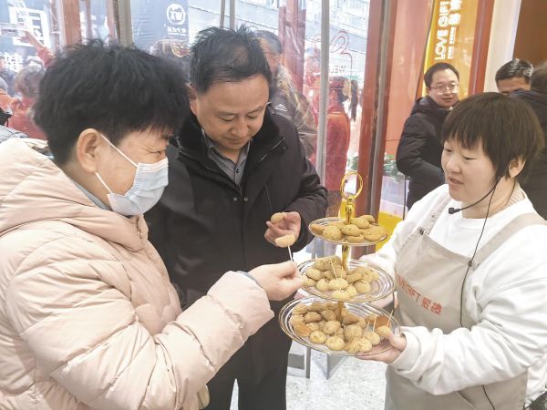 消费者品尝青稞酥。本报记者 罗珺 摄