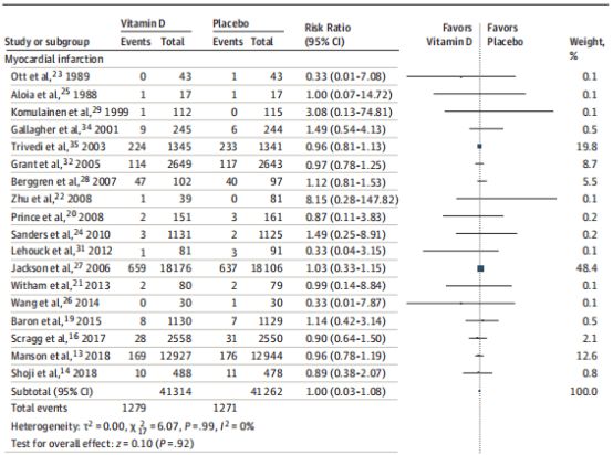 4. Barbarawi M, Kheiri B, et al. Vitamin D supplementation and cardiovascular disease risks in more than 83000 individuals in 21 randomized clinical trials: a meta-analysis. JAMA Cardiol. 2019;4:765-776.