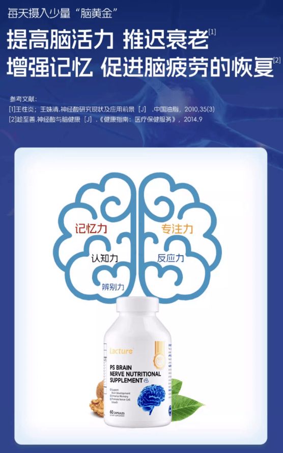 是一种重要的神经递质前体,可以提高大脑中乙酰胆碱的含量,增强神经信号的传递。临床数据显示,磷脂酰丝氨酸可以改善老年人的记忆力、注意力和学习能力,同时也对产后记忆力下降有一定的改善作用。