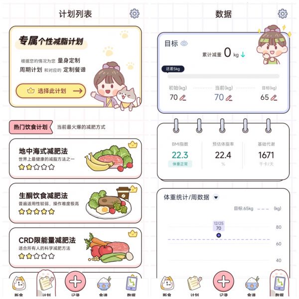 一款风格比较卡哇伊的减肥记录软件,比较适合女生。不多说,看图你就懂~