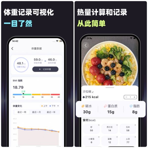 也是一款主打热量计算和身体数据管理的减肥软件。