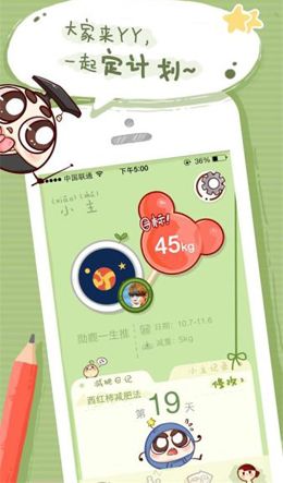 1、小肚皮减肥APP精心设计的漫画风格界面,实在太卡哇伊,让用户少女心膨胀。