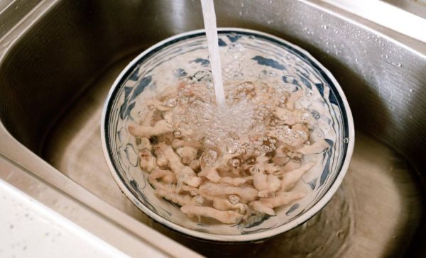 3、在水龙头下冷水冲洗几遍,用冷水浸泡15分钟,口感更Q有韧性。