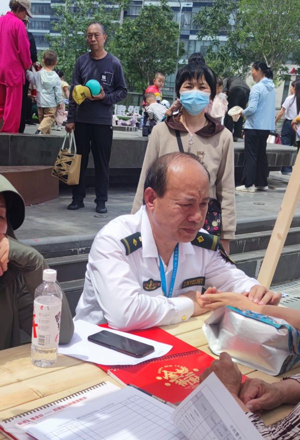 分队长户建勋更是发挥专业特长,为有需求的居民进行脉诊,针对不同体质,耐心讲解中医调理方法,提供个性化健康建议。