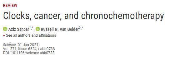 2021年1月,《Science》带来的一篇综述文章在总结了有关生物钟紊乱和对癌症的易感性以及影响癌症化疗疗效的生物钟变化的现有证据后,提出生物钟的破坏会促进癌症以及根据生物钟选择治疗时间会影响癌症治疗疗效。