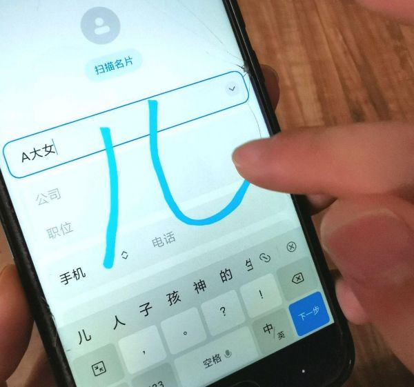 第二步俊仔就开始教爷爷通讯录里面添加联系人,拼音键对老年人来讲难度太高,只能教他打字时调到手写输入法,我先教几遍,然后退出让爷爷自己操作,其实也就平时偶尔添加熟人电话的时候会用上,对这一步也不做过高要求。