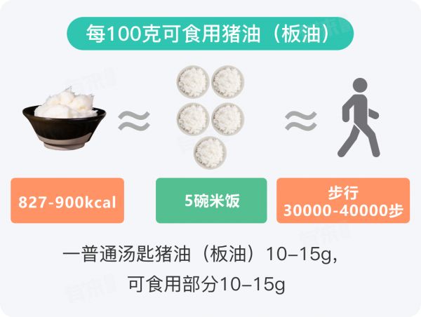 相对来说,一勺猪油(板油)的热量在一餐中占比不算低,对于需要控制热量摄入的人群而言,应当谨慎食用,以免热量摄入过多。