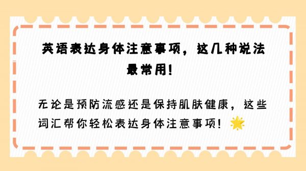 身体注意事项的英文表达可以有多种,以下是一些常用的表达方式: