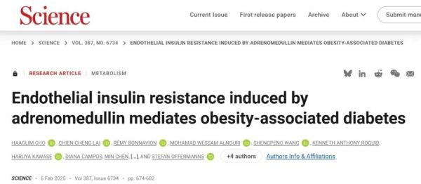 [1]Haaglim Cho et al. ,Endothelial insulin resistance induced by adrenomedullin mediates obesity-associated diabetes.Science387,674-682(2025).DOI:10.1126/science.adr4731