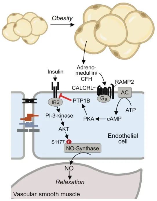 由此可见,肥胖引发的胰岛素抵抗至少部分基于循环系统的胰岛素抵抗,而肾上腺髓质素是这一过程的关键因子,可以作为治疗的潜在靶点。
