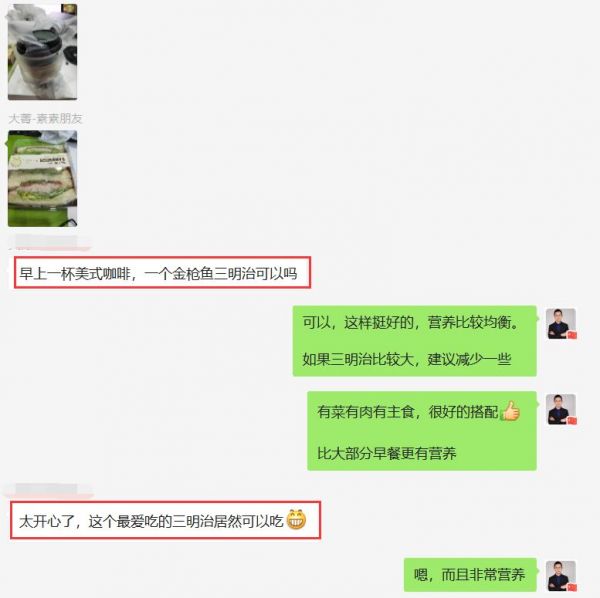 瘦身营的小伙伴问我能否吃三明治?还拍照发给了我。