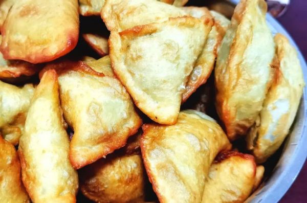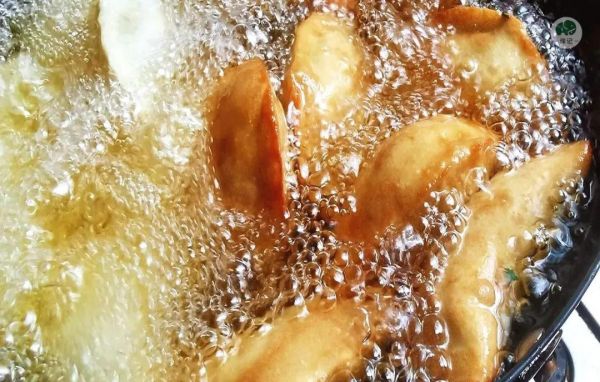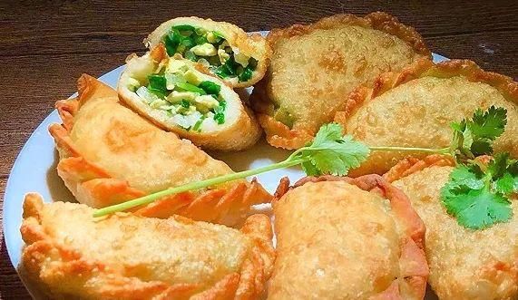 菜角和糖糕都用烫面炸制,菜角的馅一般以韭菜、鸡蛋、粉条为主,视各家土豪程度不同而原料略有添加,一般会包成大饺子状,呈半月形,时间充裕时主妇们还会包出花边。
