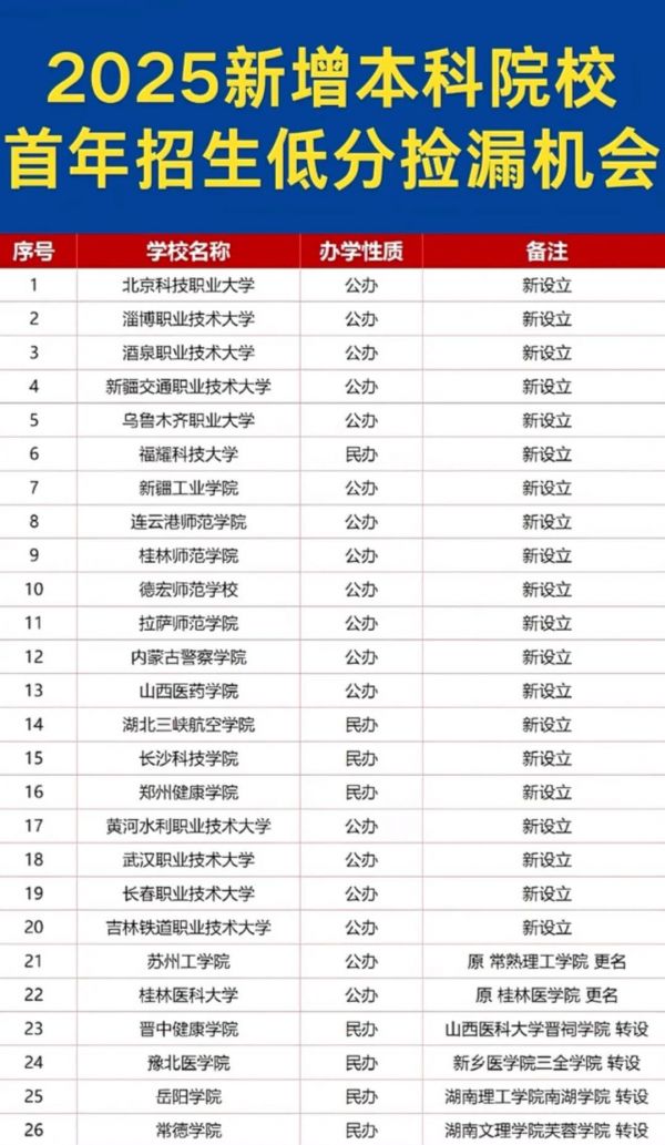 低分捡漏!2025新增本科院校大盘点 ...全文